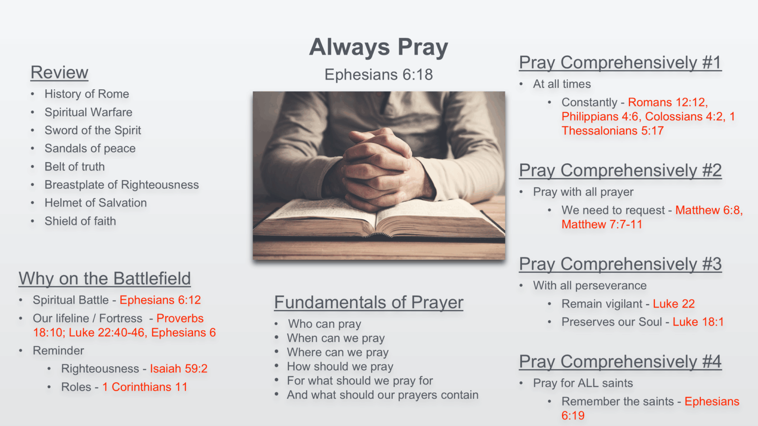 Sermon Outline/Slides: Prayer and Concluding thoughts on the armor of God